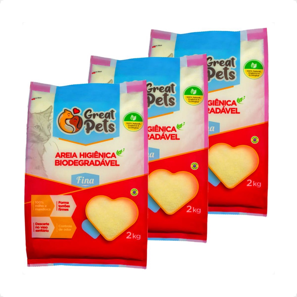 Kit 3 Areia Biodegradável Fina Great Pets para Gatos - 2 Kg