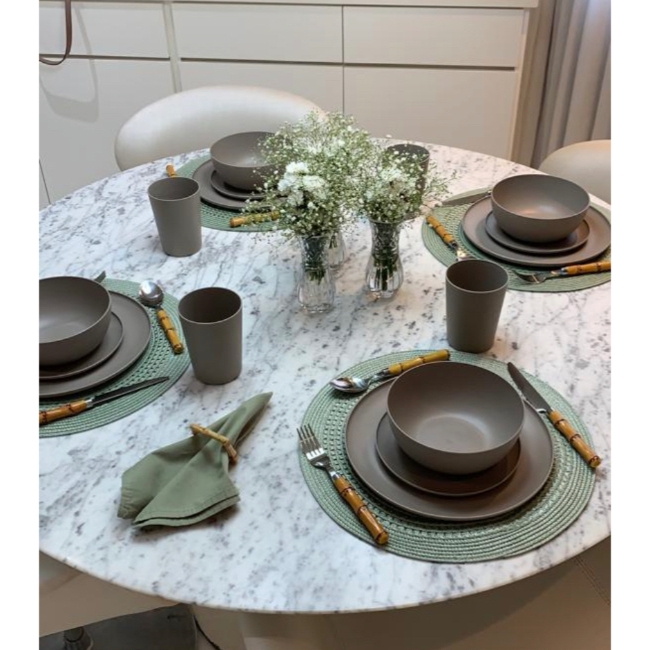 Jogo Pratos e Copos Bowl Aparelho De Jantar Cinza Concreto De Plástico Resistente 10 peças - 4 Pratos + 4 Bowl + 2 Copos
