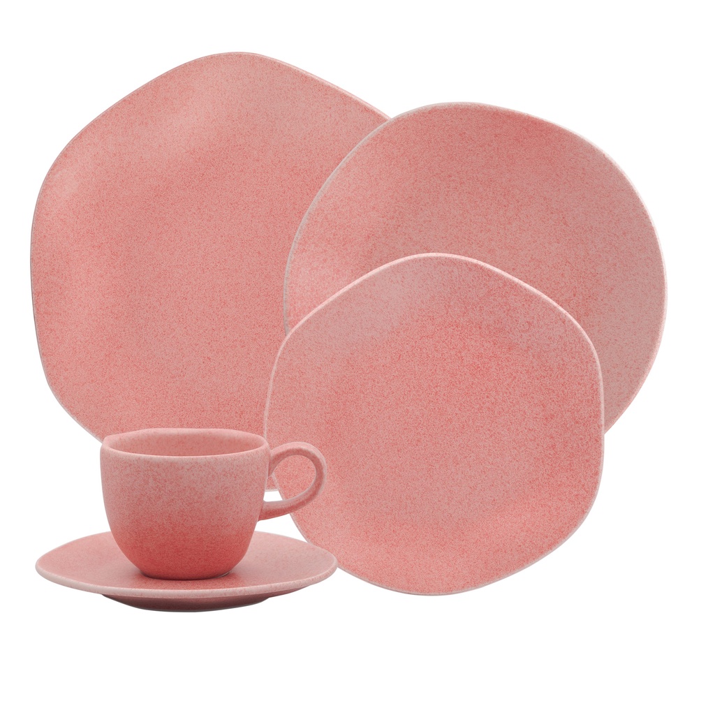Aparelho de Jantar e Chá Porcelana 30 peças Ryo Pitaia Oxford Jogo de Pratos e Xícaras Rosa