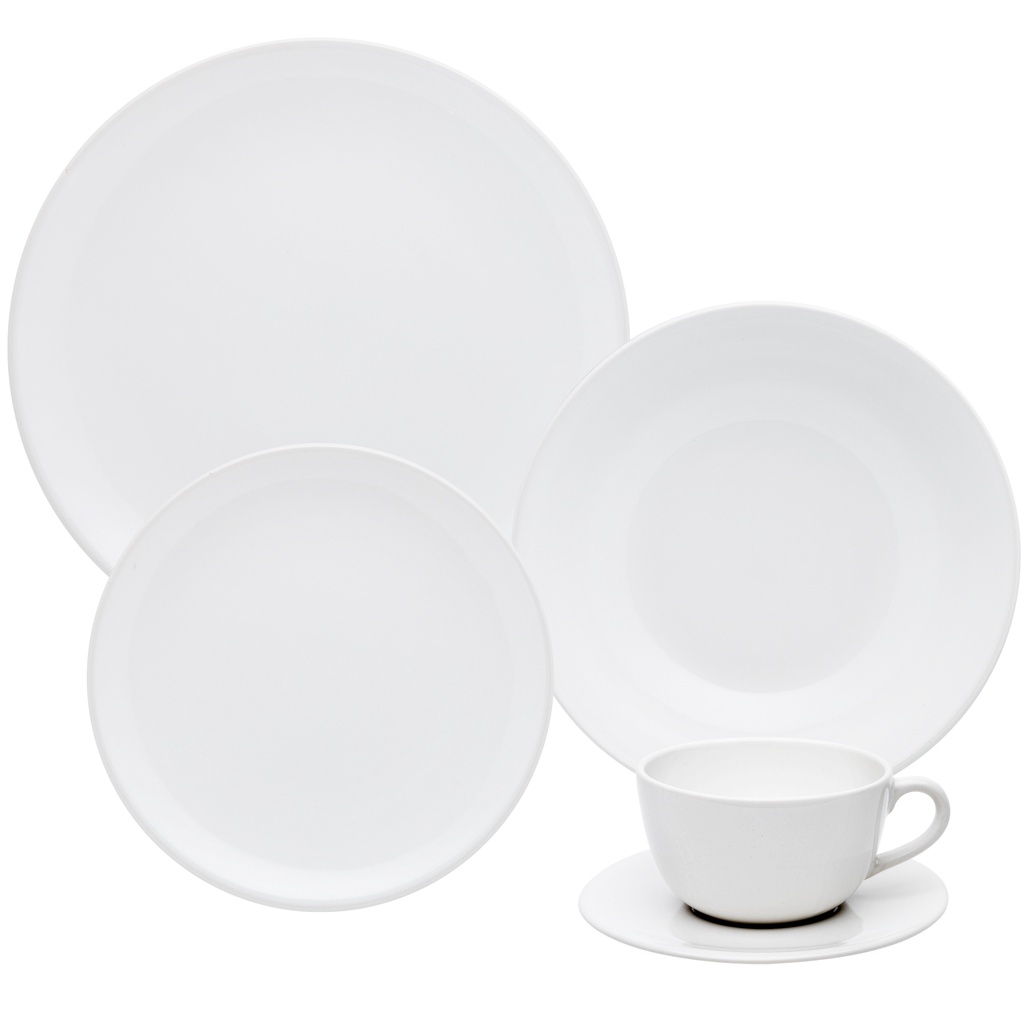 Aparelho Jantar e Chá Branco Porcelana 30 Peças Ryo White Oxford Jogo de Pratos e Xícaras Completo