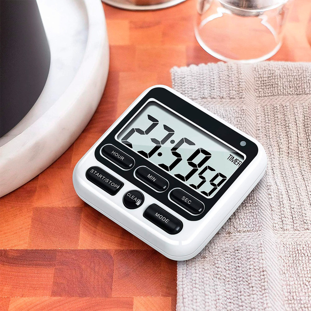 Timer Digital De Cozinha Imã LCD Eletrônico Multiuso Temporizador Cronômetro Relógio E Data Alarme