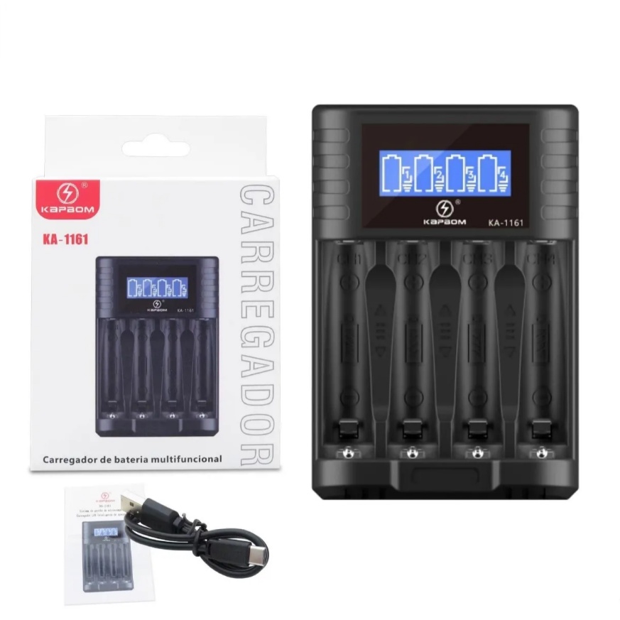 Carregador de Pilhas Kapbom com Display LED Inteligente Rápido Comum AA Palito AAA KA-1160/KA-1161