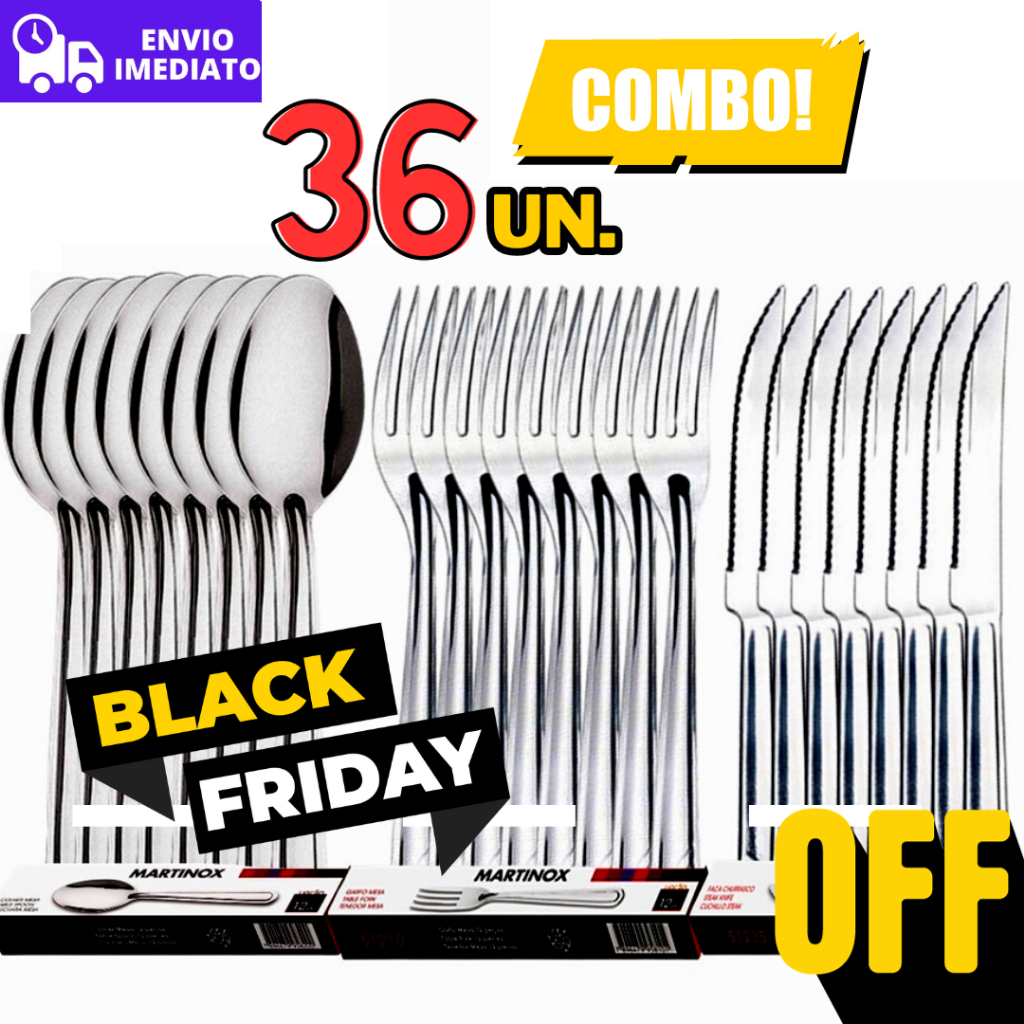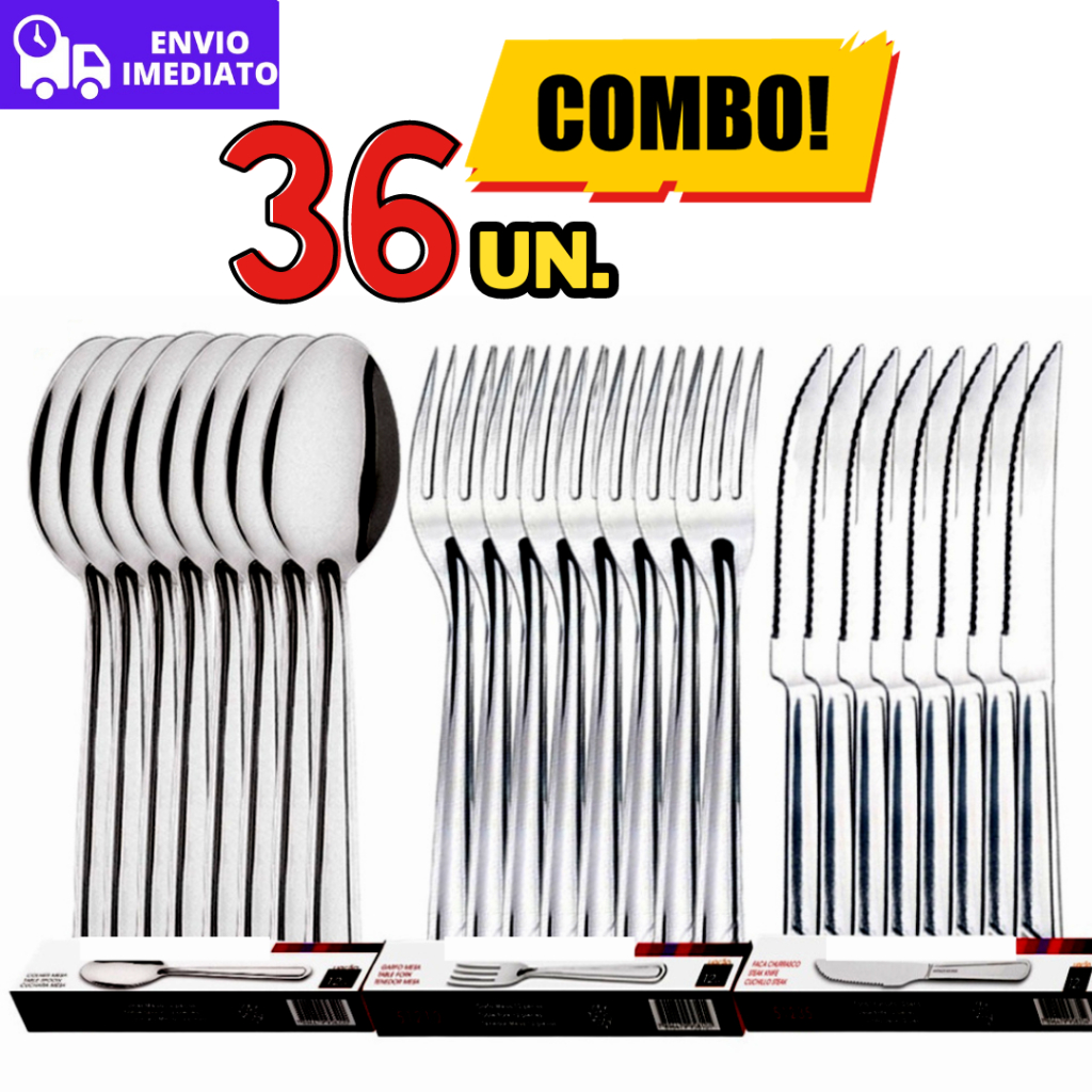 Jogo de Talheres 36 peças Aço Inox 12 Facas 12 Garfos e 12 Colheres de Mesa