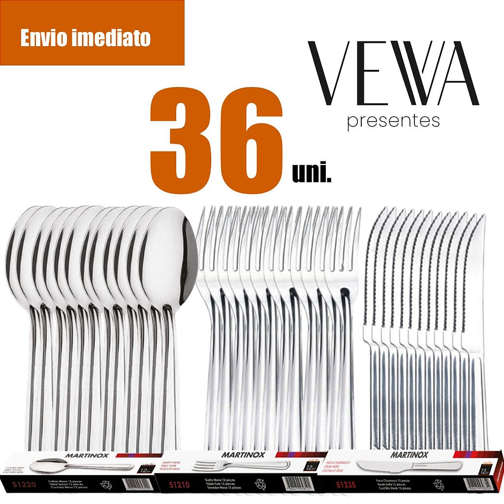 Jogo de Talheres 36 peças Aço Inox 12 Facas 12 Garfos e 12 Colheres de Sobremesa