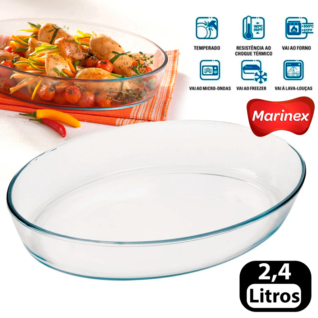 Travessa Oval Marinex 2,4 Litros Assadeira de vidro Temperado forma grande (ENVIO IMEDIATO)