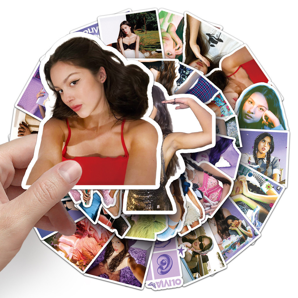 50pcs Olivia Rodrigo Olivia Rodrigo Adesivos para Bagagem Adesivos para Caixa de Papelaria Adesivos para Manual de Adesivos para Personagens Anime Adesivos para Copo de Água Adesivos para Guitarra