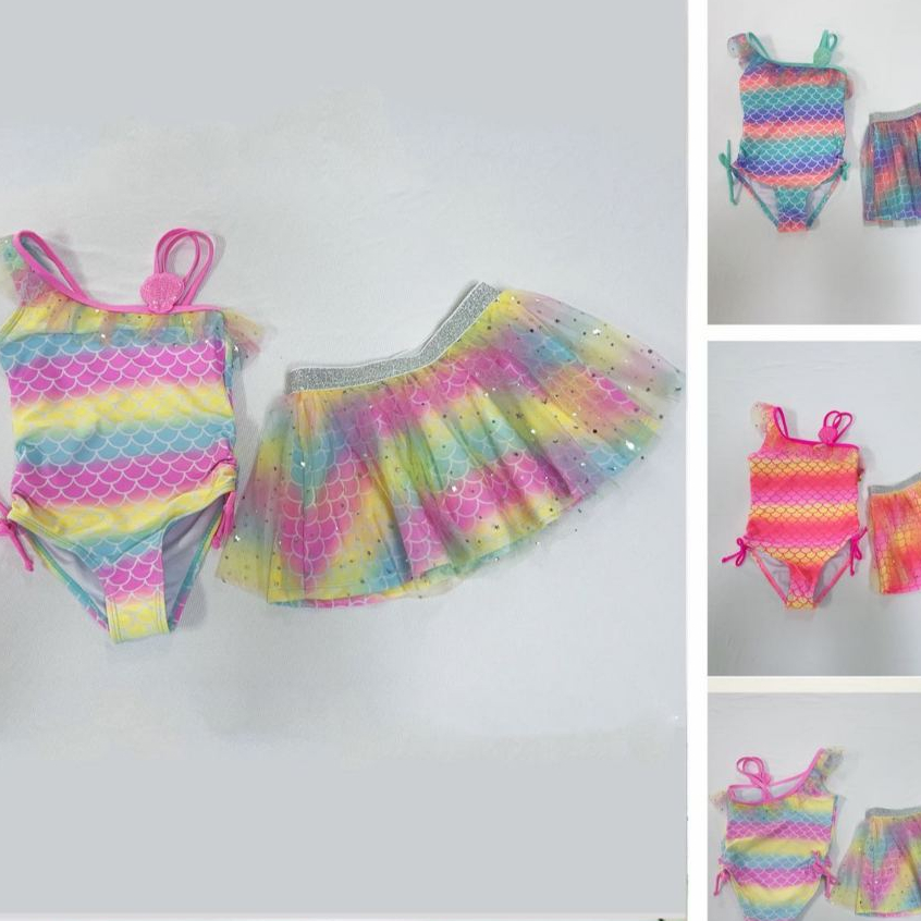 Maiô Infantil Menina 4-10 Anos Maio Moda Sereia 2025 Verão Praia Fato De Banho Infantil Com Saia De Renda