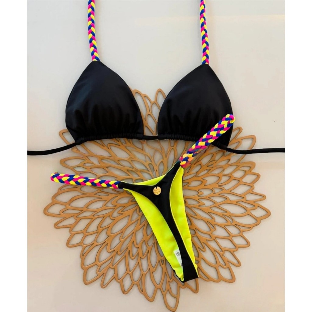 Maiô de cintura alta 2025 estilingue cor sólida novo estilo feminino europeu americano triângulo maiô biquíni dividido