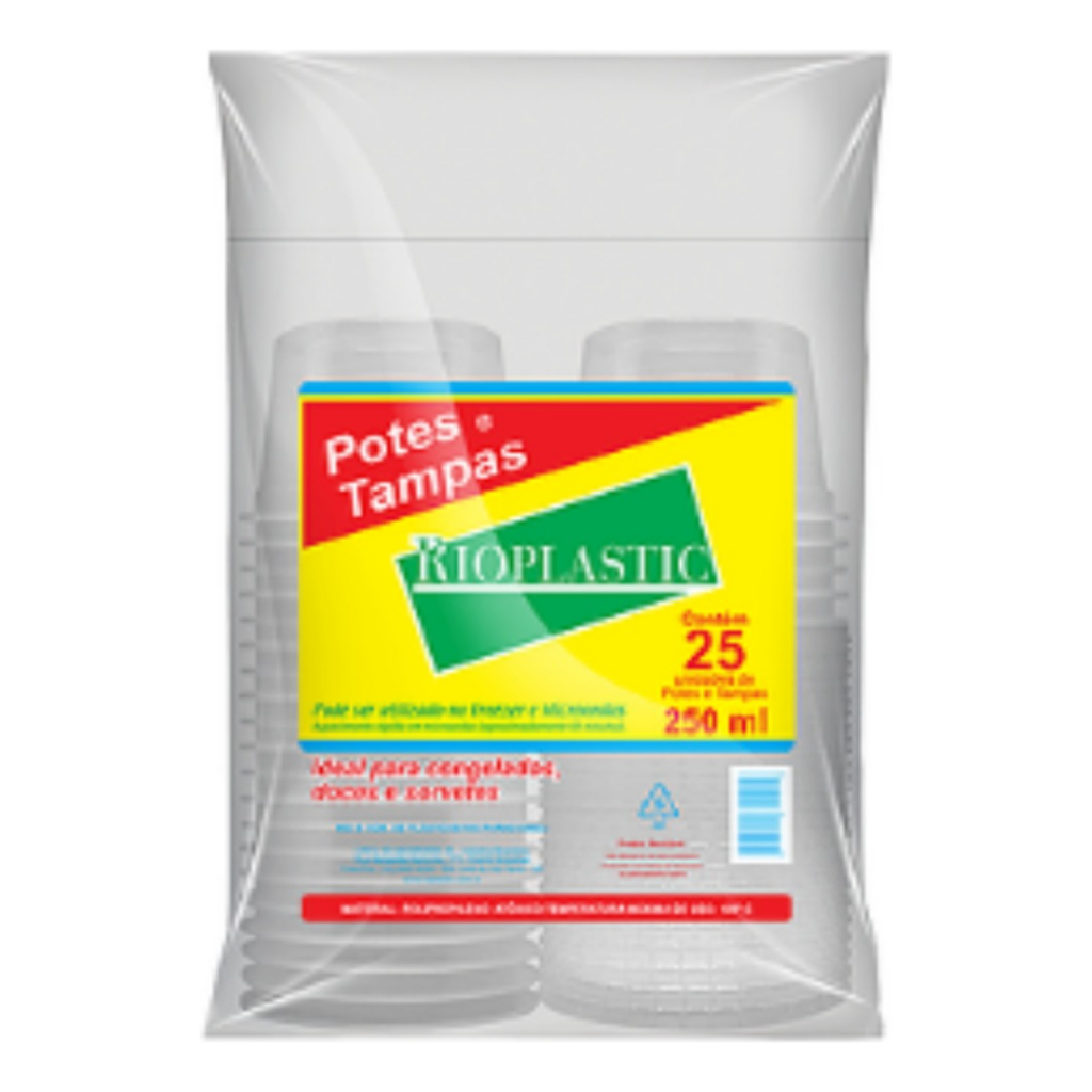 50 potes - KIT Pote descartável com tampa 250ml - REDONDO - para bolo no pote, açaí e entre outros tipos de alimentos.