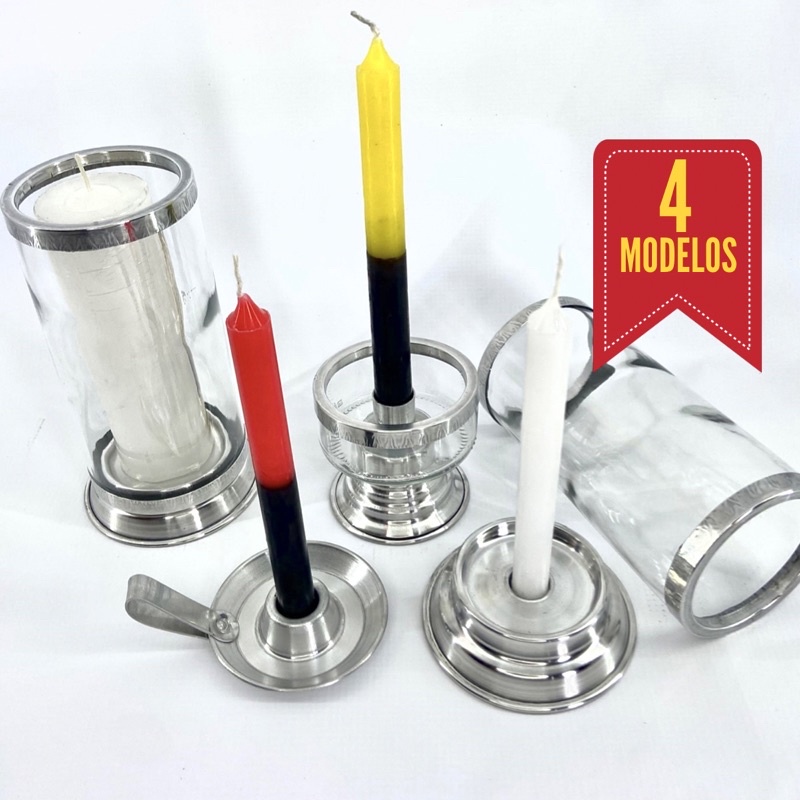 Porta Vela, Suporte, Castiçal, Taças, Copo de Vela para vela de 7 dias e Vela Palito. Feito de vidro e alumínio