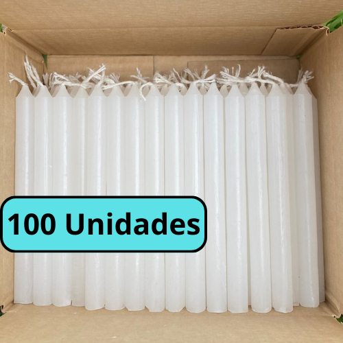 Vela Palito Branca Tradicional 100 Unidades Preço de Atacado Parafina Pura 17,5 cm X 1,5 cm