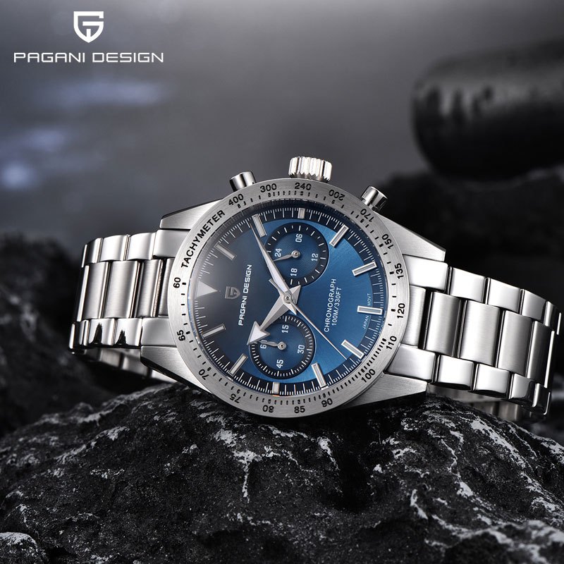 PAGANI DESIGN 2025 Novo Relógio Cronógrafo Esportivo Masculino Japão VK64 Sólido Aço Inoxidável Vidro Safira 100M À Prov