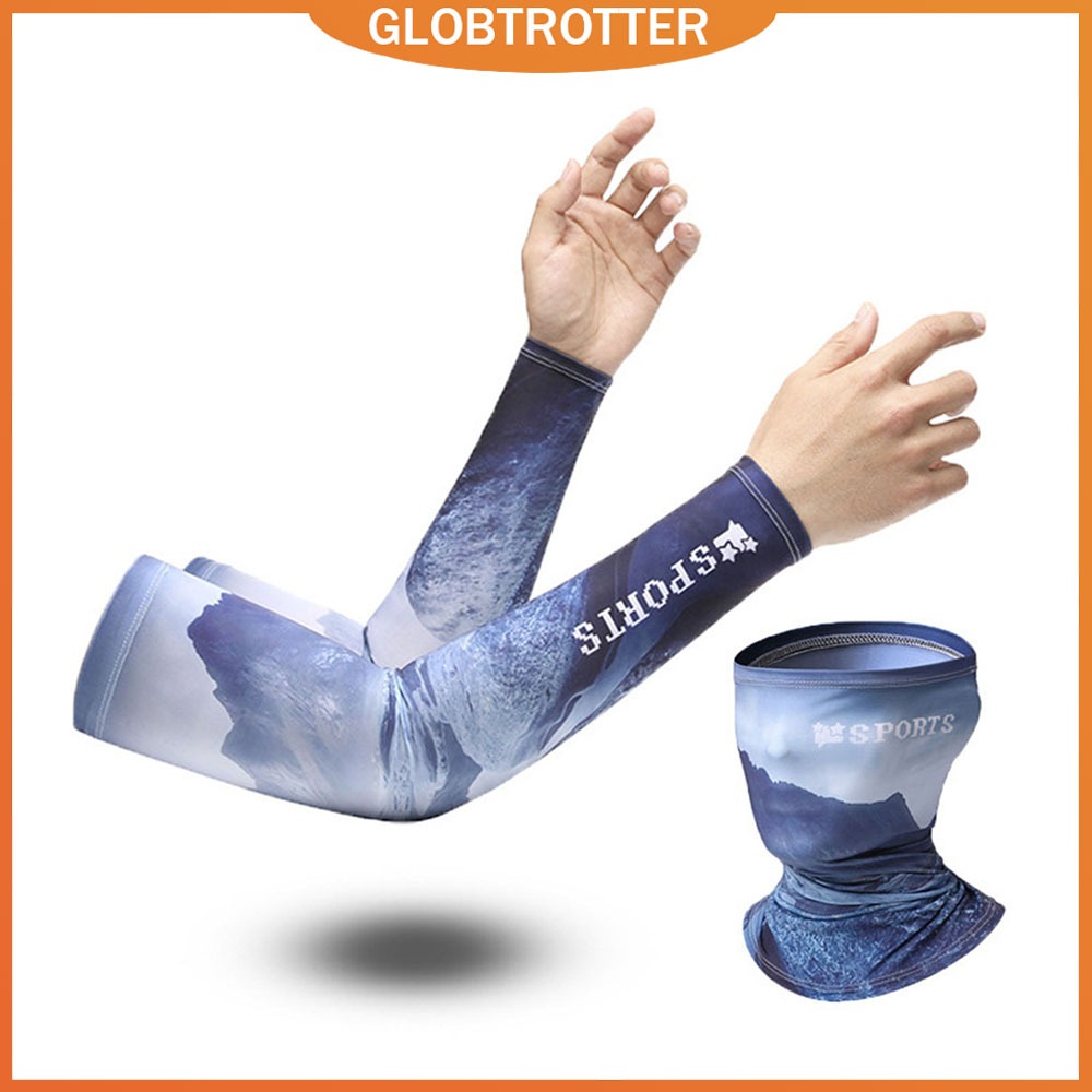 Globetrotter 2 Em 1 Conjunto Toalha De Rosto E Braço De Proteção Solar Ice Silk Capas De Cotovelo Unisexo Capa Para Ciclismo Ao Ar Livre Manga De Fria Anti-UV