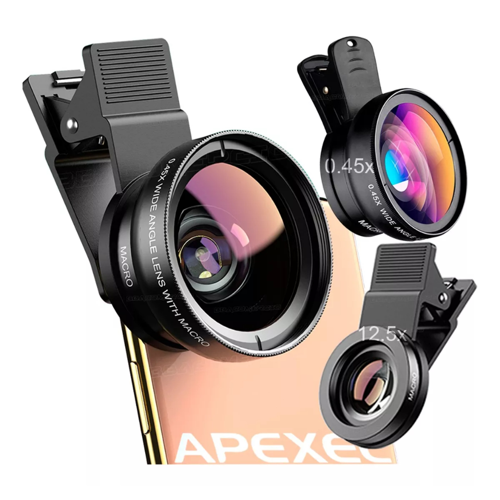 GS 2 Em 1 Kit Clip De Lente Do Telefone Móvel Externo HD Lente Celular Macro 12.5x E Super Ângulo Amplo 0.45x