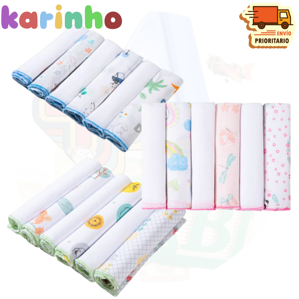 Pano de boca KIT 6 unidades Babete Fralda de boca 100% algodão 30cm x 30cm