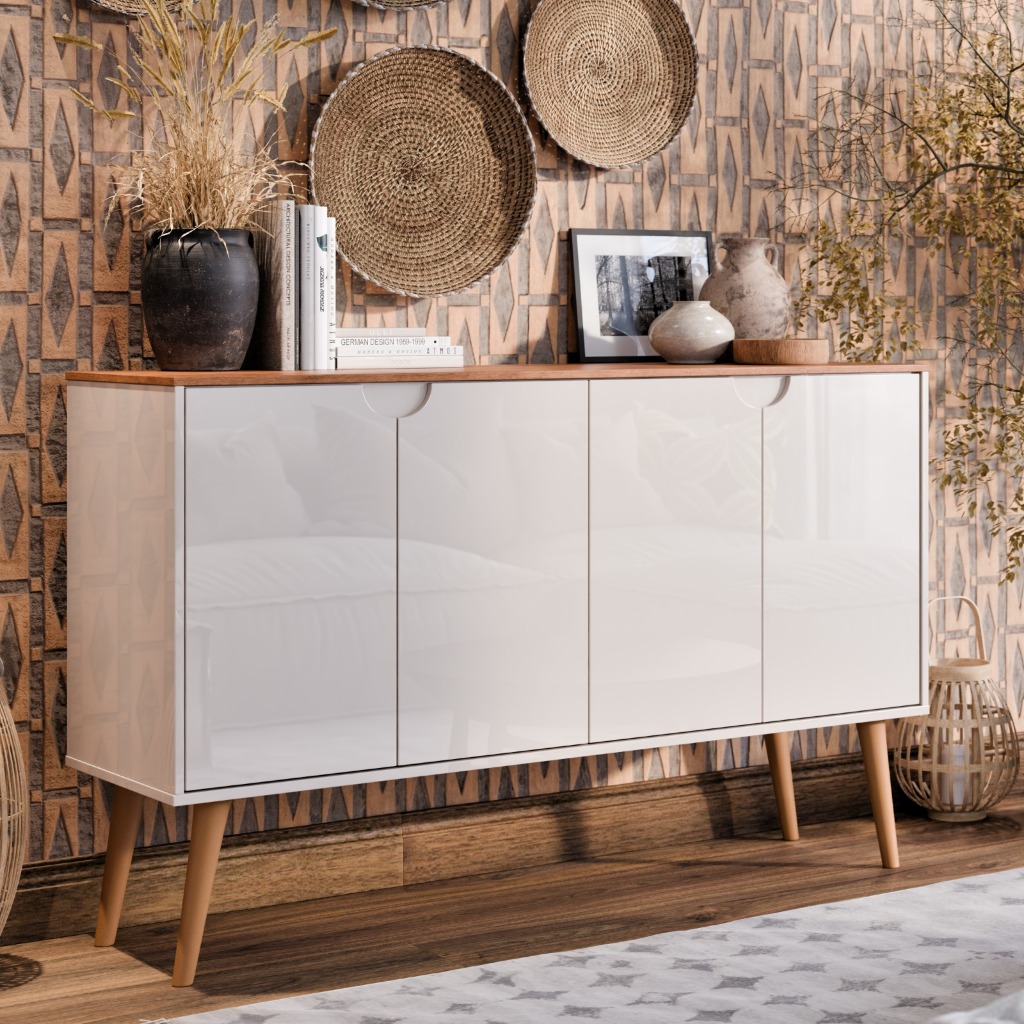 Aparador/Buffet Bar Retrô 4 Portas FLOW Cantinho do Café Com Pés em Madeira SHARK MOVEIS