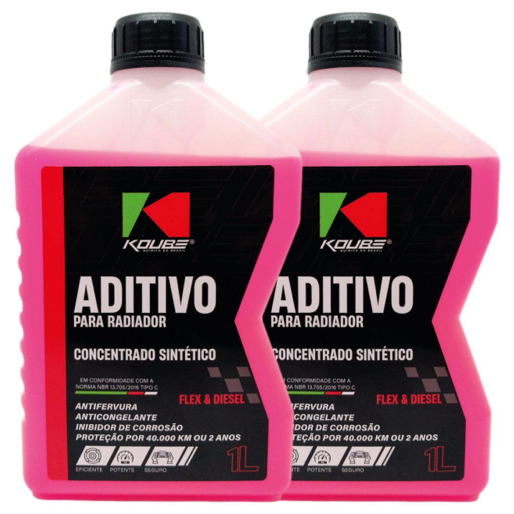 02 Aditivo Radiador Koube Concentrado Sintético Rosa 1 Litro