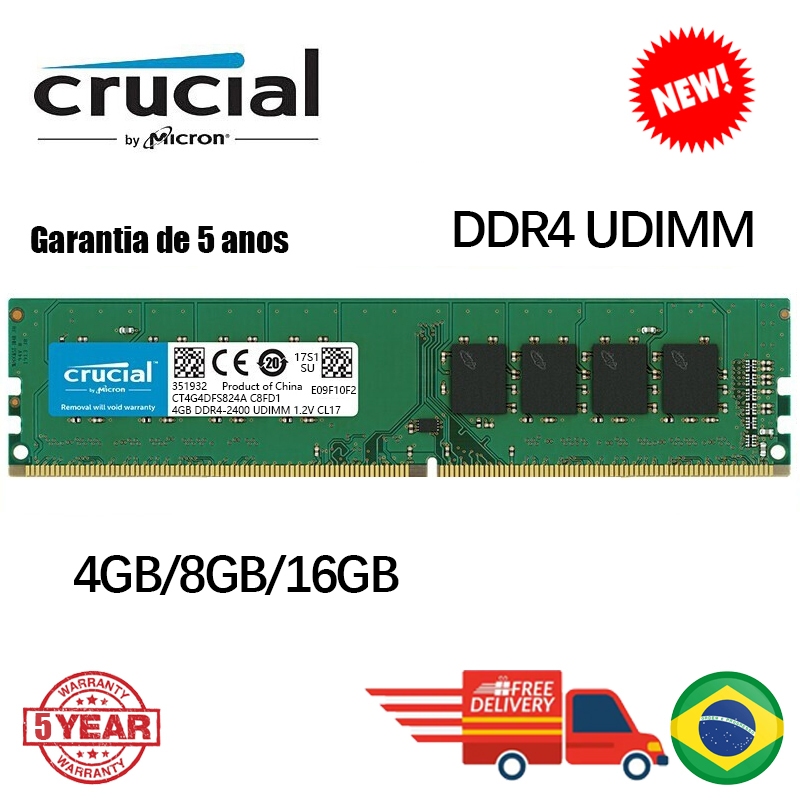 Crucial DDR4 4GB 8GB 16GB DDR4 2133MHz 2400MHz 2666MHz 3200MHz PC4 288pins De Memória Desktop Dimm Ram
