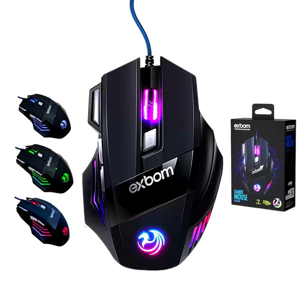 Mouse Gamer Exbom Ms-g260 Óptico Usb Led 7 Botões 3200 Dpi
