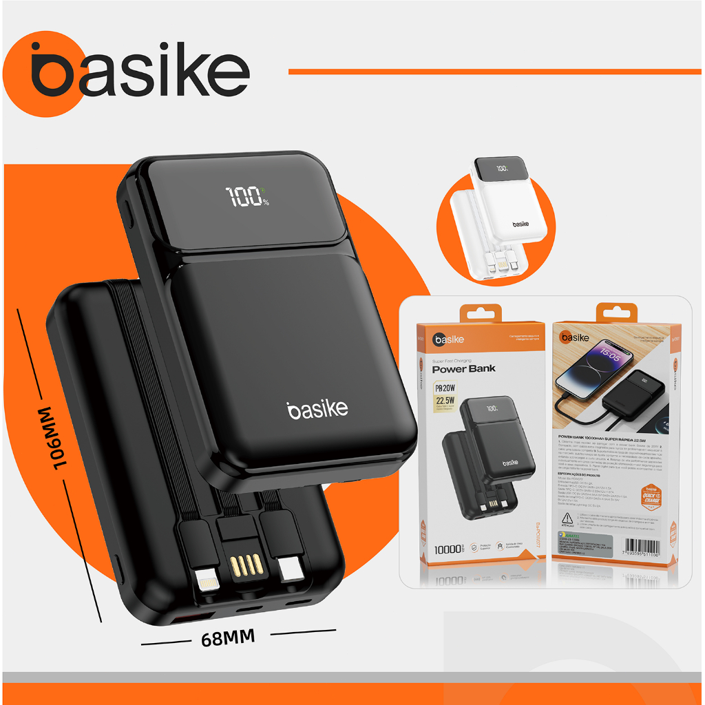 Basike 22.5W super carga rápida Carregador Portátil 10.000mah Power Bank carregador de pilhas com adaptador