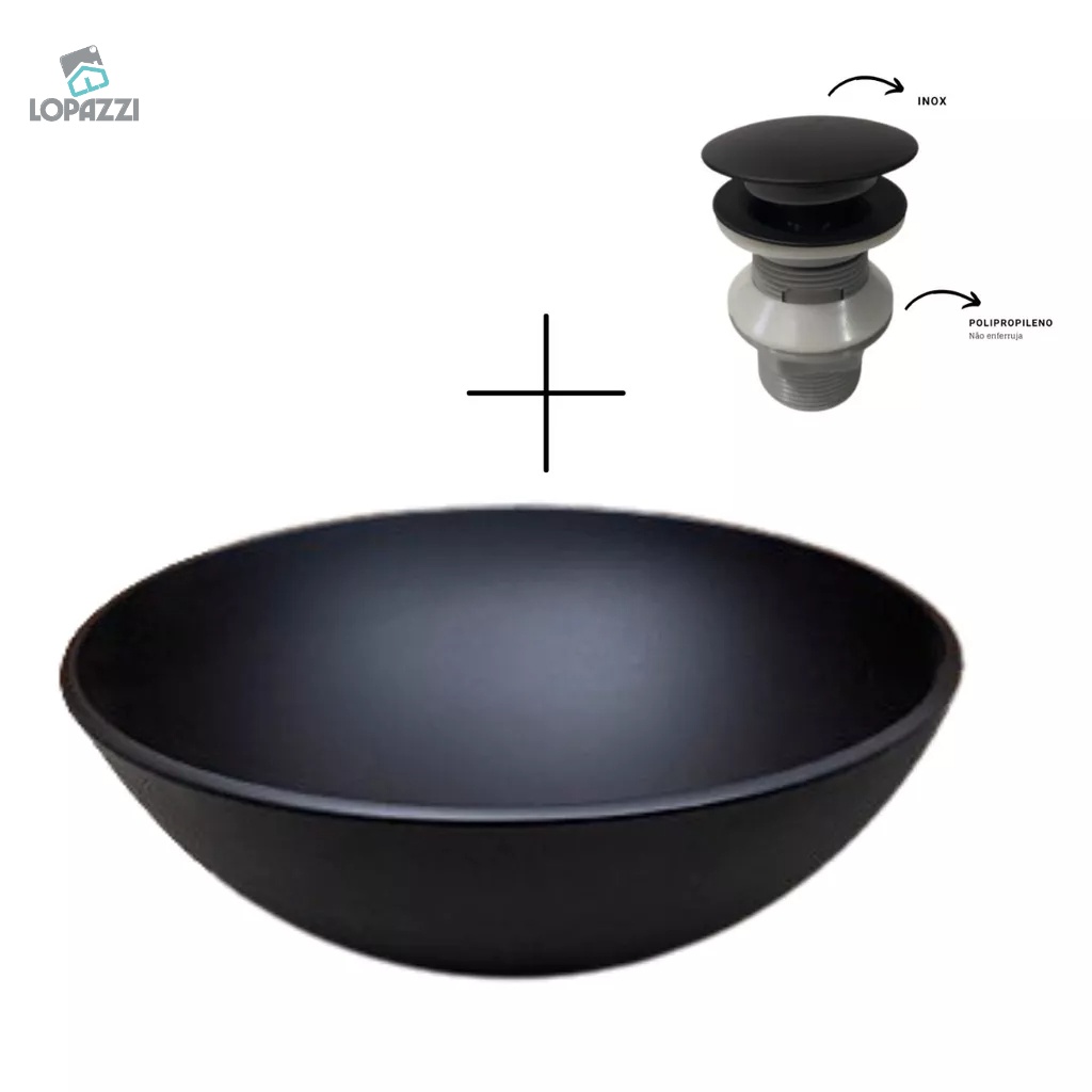 kIt para banheiro lavabo com Cuba de Apoio Redonda 35 + Valvula Click Inteligente - Preto Fosco