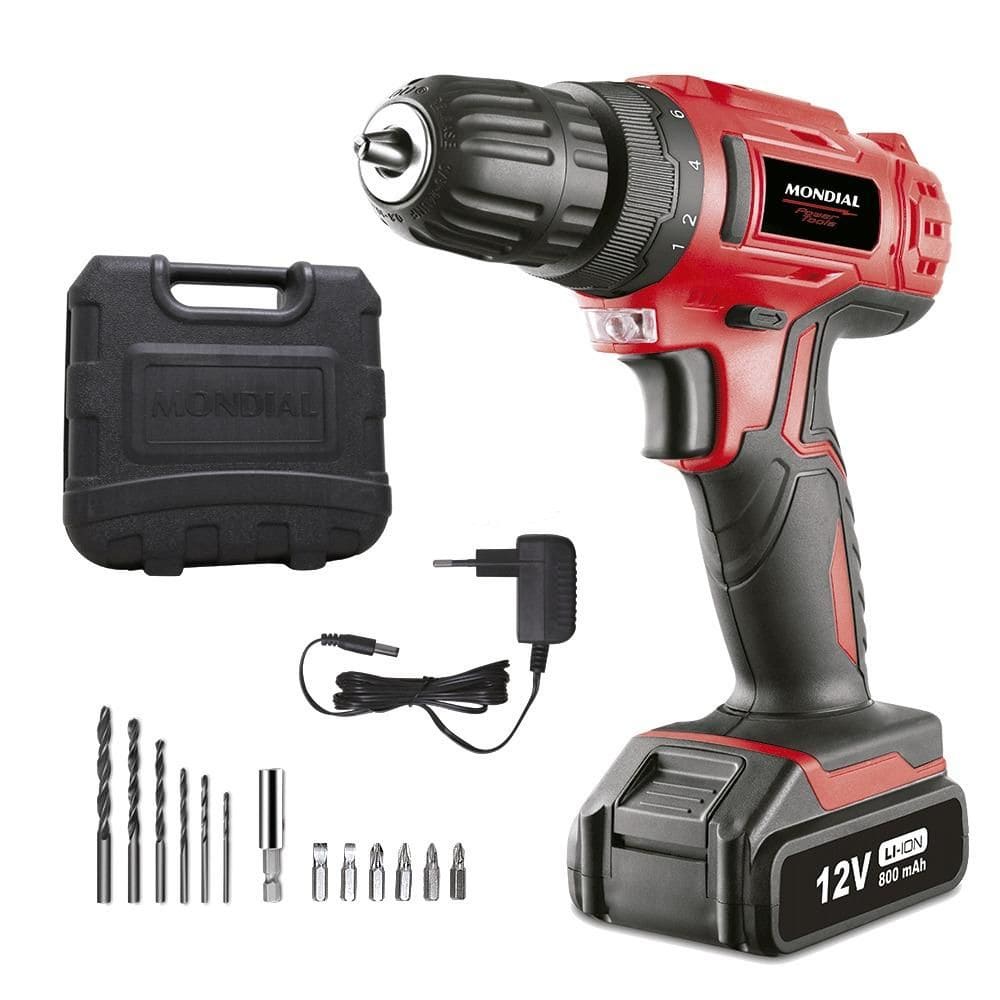Furadeira Parafusadeira 3/8" à bateria 12 volts c/ maleta e acessórios - FPF-06M - Mondial (110V/220V)