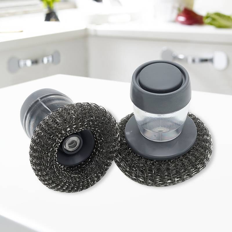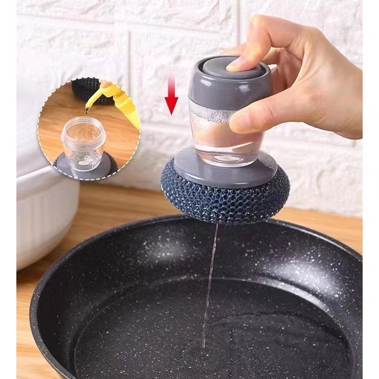 NOVO escova aço com dispenser para detergente limpeza pesada panela grelha churrasqueira desengordurante/Escova Esponja De Aço De Lavar Louça Com Porta Detergente Dispenser Multiuso