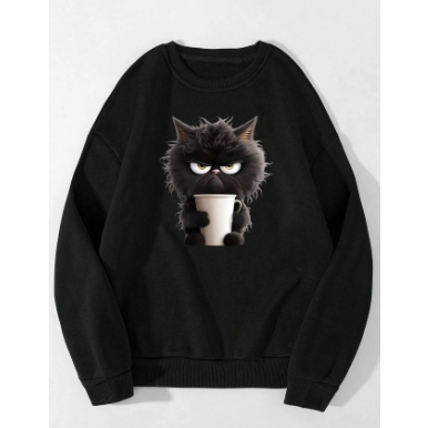 Casaco Moletom Gola Redonda Gato Preto ( Acordei e nao recomendo) Novo!