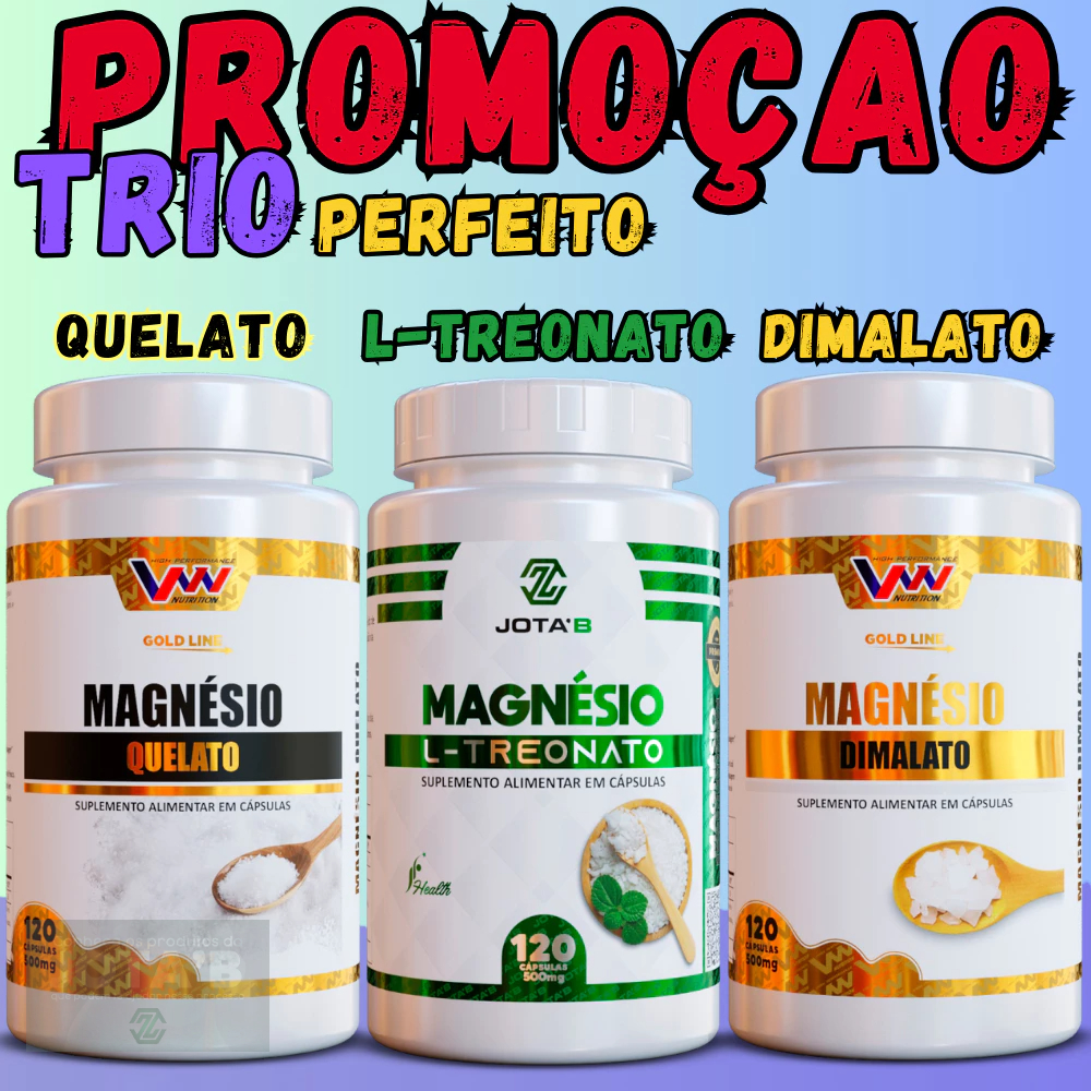 Os 3 Magnésio Mais Vendidos agora Em um Kit L - Treonato - Dimalato - Quelato