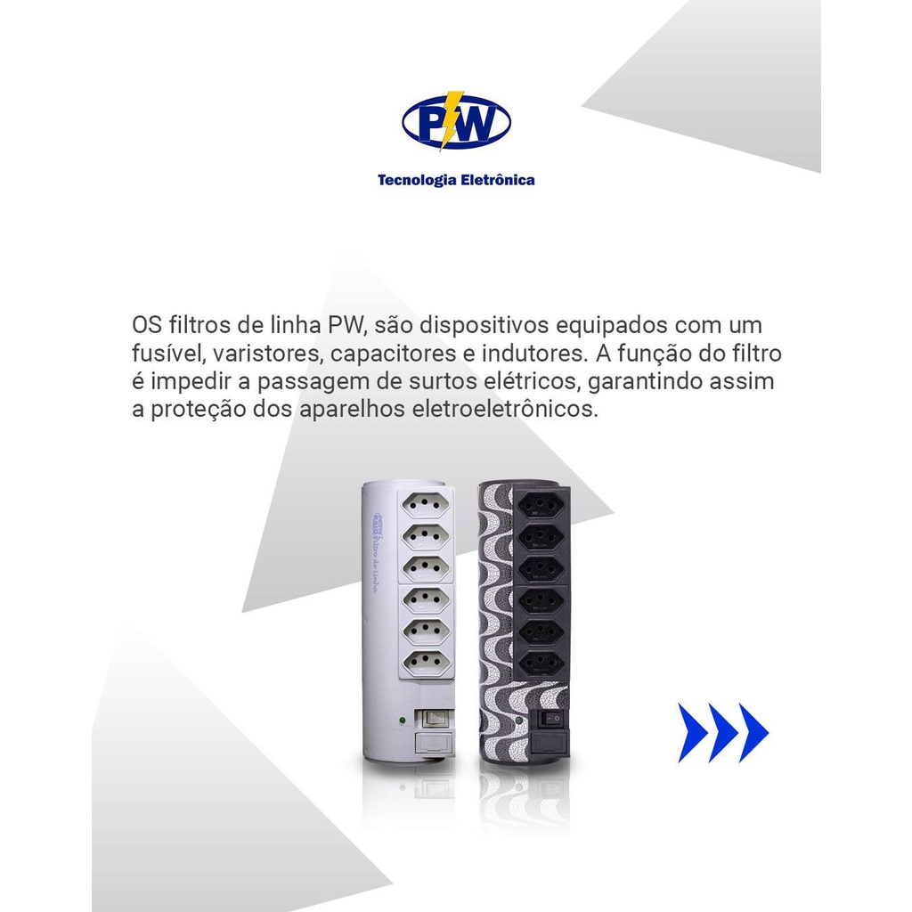 Filtro de Linha PW com Proteção contra Surtos, 6 Tomadas Tripolar, Cinza, Bivolt