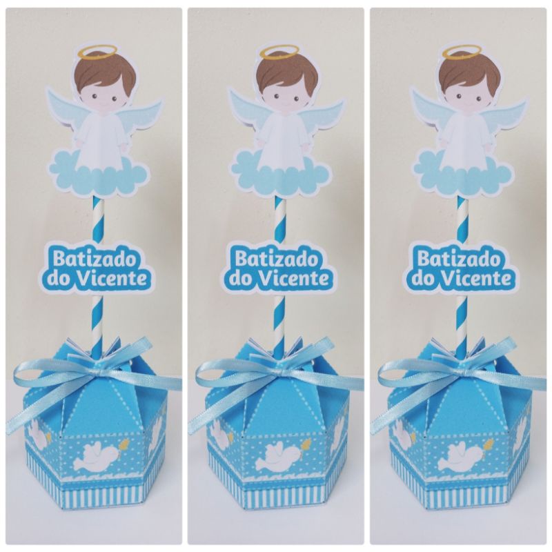 Kit Centro de mesa personalizado, 10 ou 15 unidades, Batizado menino