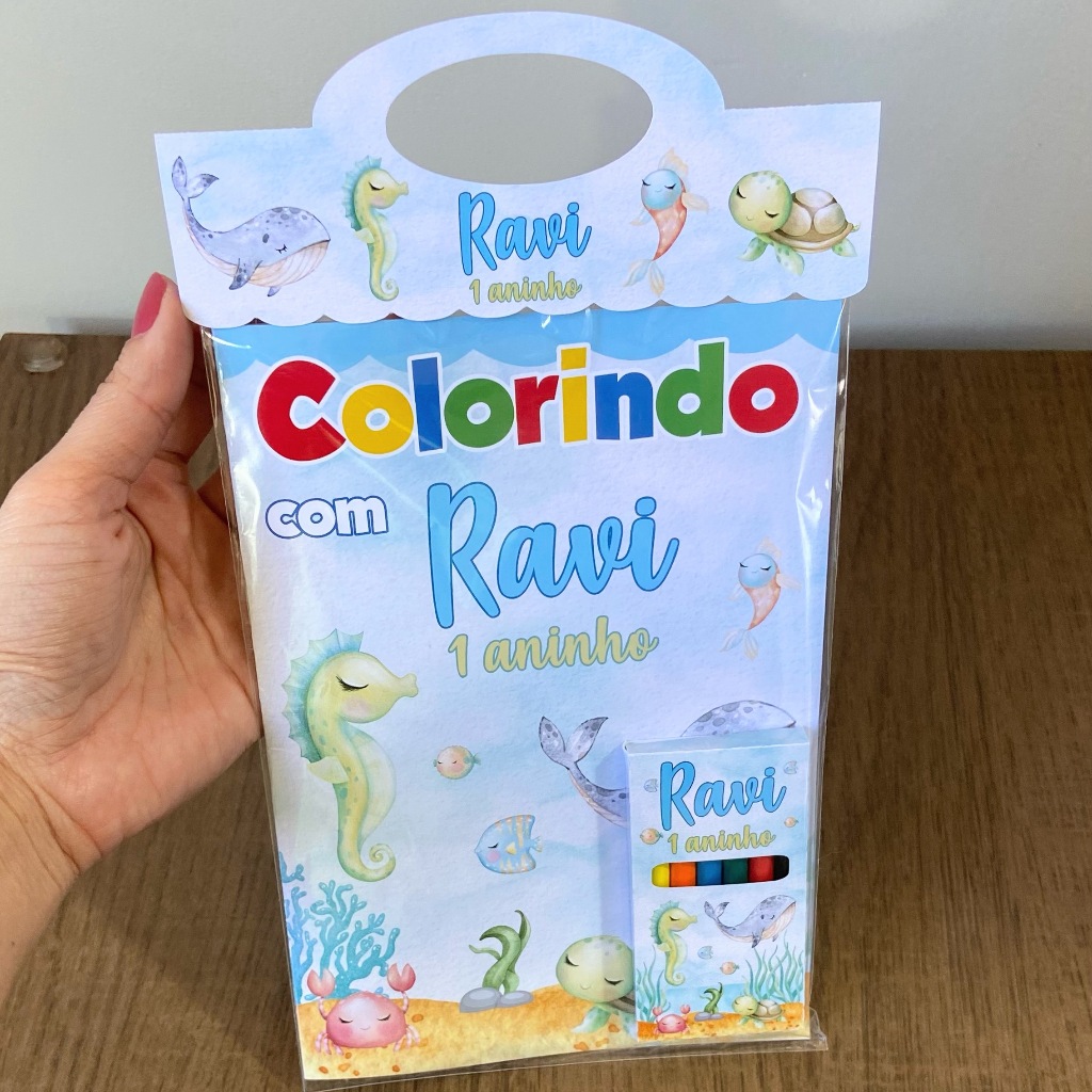 Kit de Colorir Fundo do Mar Menino Azul Personalizado | Revistinha | Livrinho | Lembrancinhas