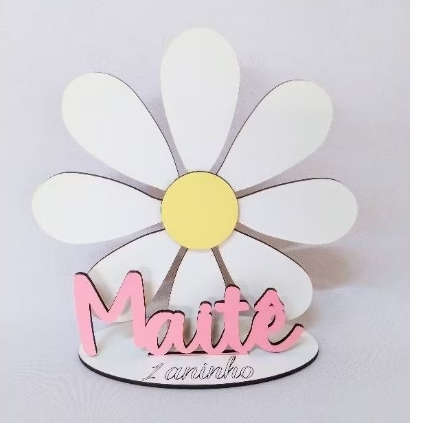 Kit Centro de Mesa Decorativo Margarida Personalizado Lembrancinha Aniversário Mdf