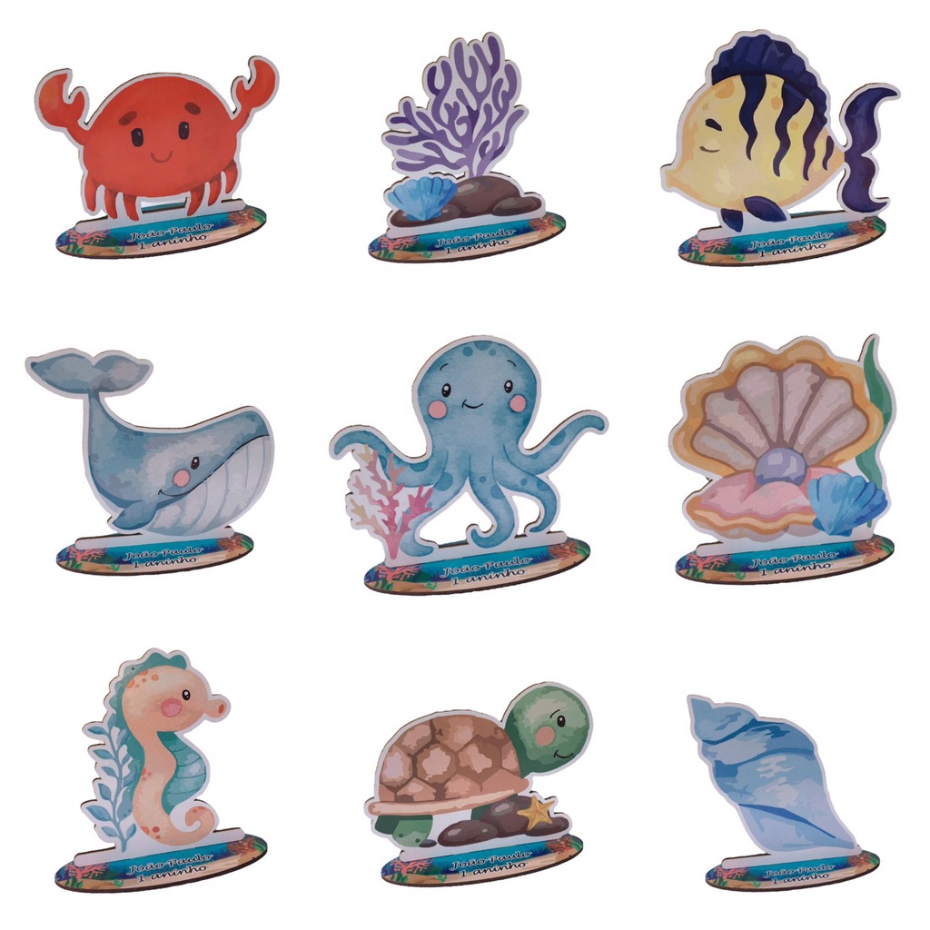 Centro de Mesa Fundo do Mar Aquarela em Madeira Adesivado kit de Totens para Festa