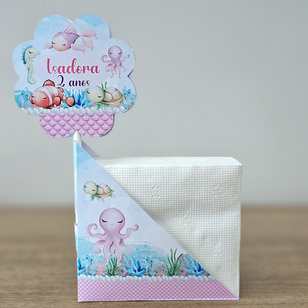 Centro de Mesa Porta Guardanapo Fundo do Mar Rosa Personalizado Enfeite Festa Aniversário Chá Infantil