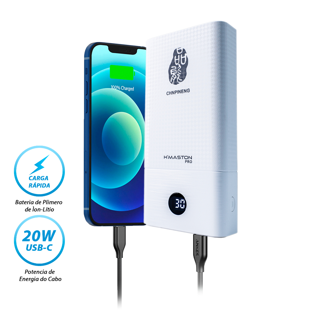 H'maston Carregador Portátil Power Bank 10000mah Rápido 22.5W Tipo-c e 2.4A Lightning Cabo Com Display de Energia Inteligente LED YD-21