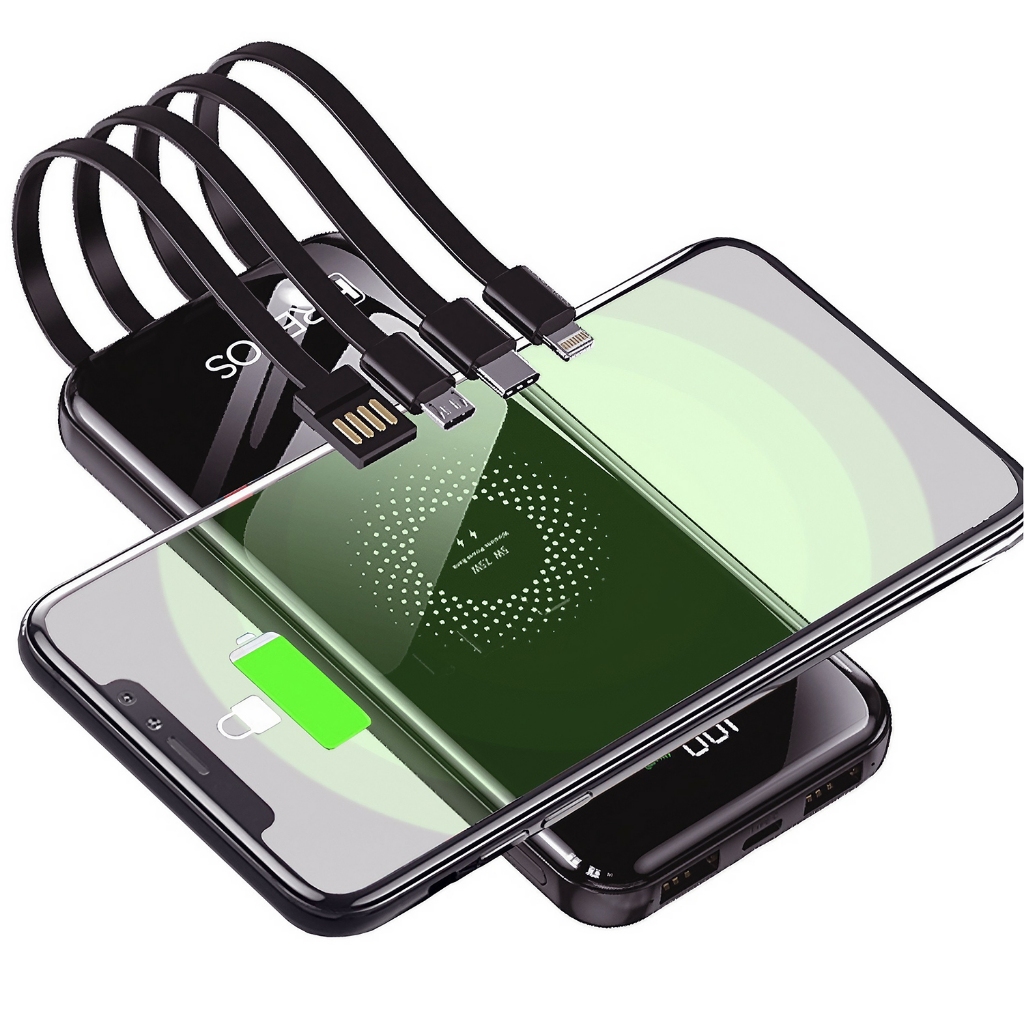 Carregador Portátil Bateria Externa Powerbank Indução 10000mAh Sem Fio Múltiplo Rápido Turbo Fast Charger PD QI