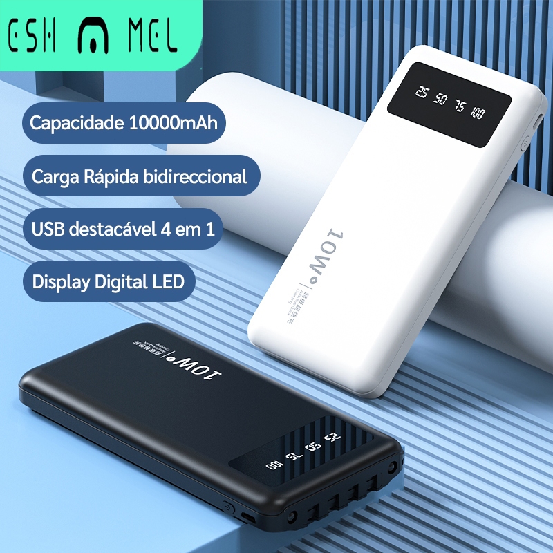 Power Bank Carregador Portátil 10000mah Visor LED De Bateria Carregamento Rápido Bateria Externa 2 Modos De Carregamento