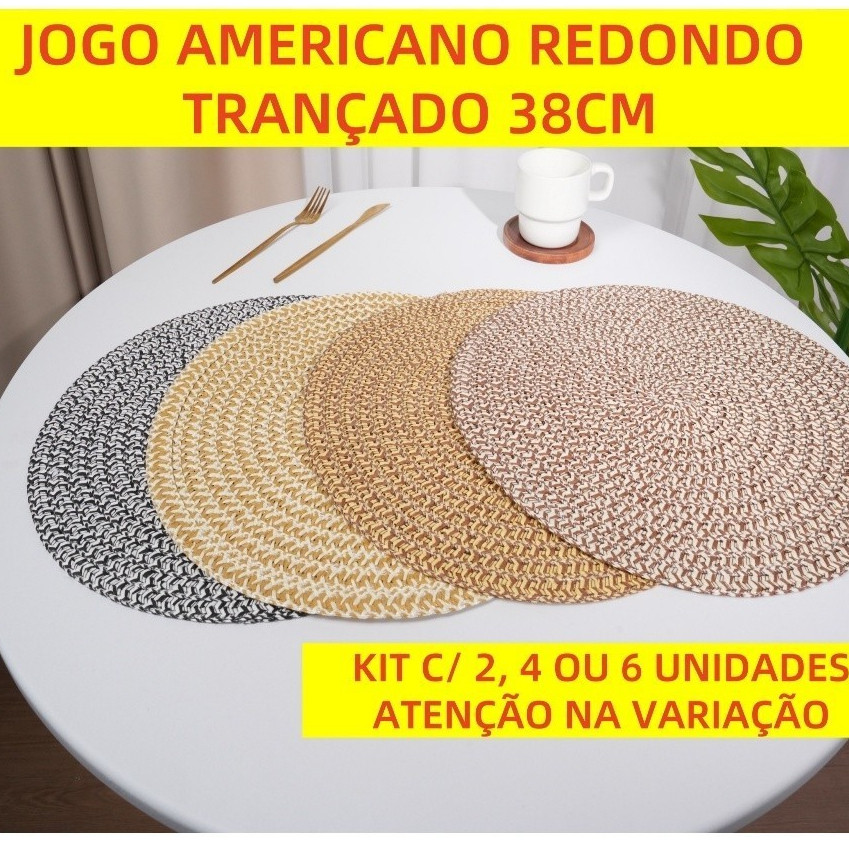 OFERTA Jogo Americano Kit 6 Unidades 37,5Cm 4 ou 2 Peças Descanso De Mesa Redondo Elegante E Rústico