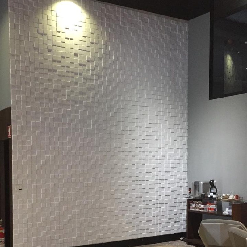 Kit 10 Placas Revestimento de Parede PVC 3d Alto Relevo Pixels Branco