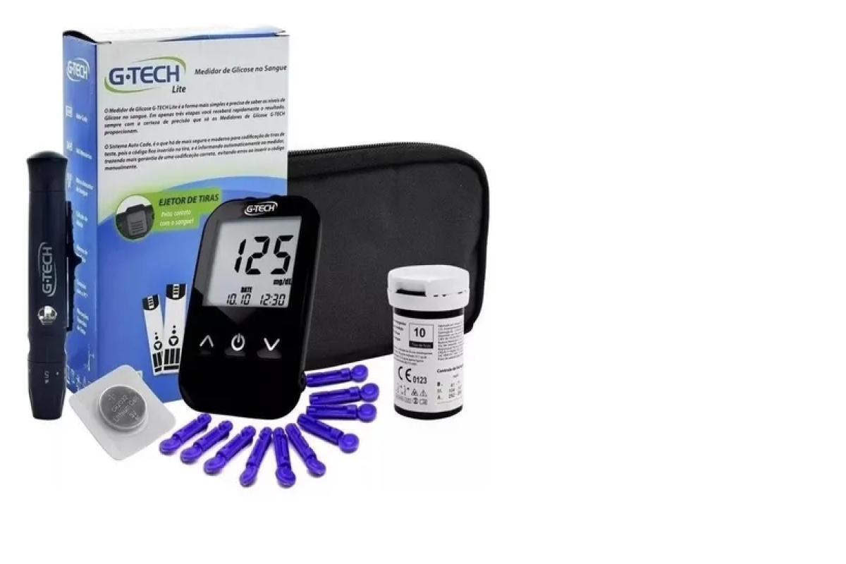 Kit Medidor de Glicose G-Tech Lite com 1 Aparelho + 1 Lancetador + 10 Lancetas + 10 Tiras Teste