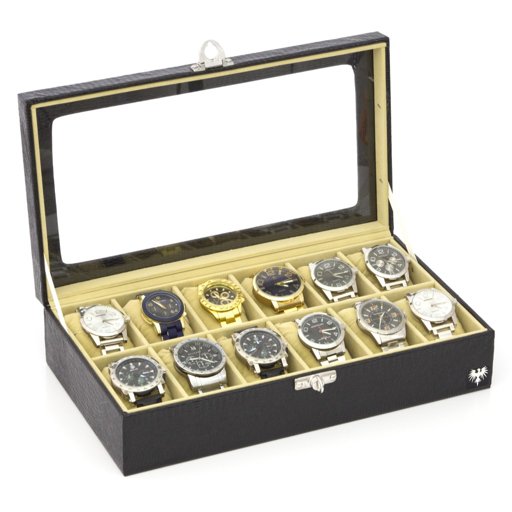 Porta Relógio Total Luxo Estojo Couro Ecológico 12 Nichos