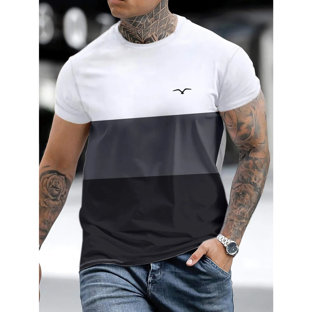 Camiseta Camisa Masculina Listrada Com Estampa