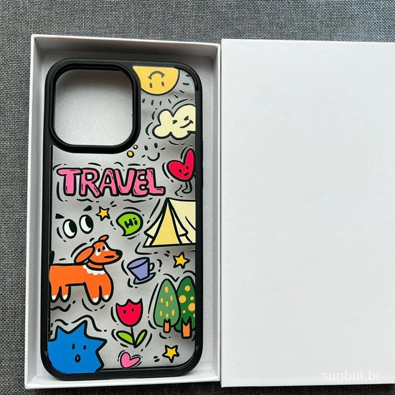 Puppy Doodle Capa de telefone transparente à prova de queda e à prova de choque Capa dura dos desenhos animados Compatível com iPhone 7 8 Plus XR X XS MAX 11 12 13 14 Pro max 12 Pro 13 Pro max 14 Pro max Capa protetora