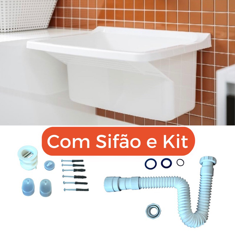 Tanque Lavar Roupas Tanquinho Pia Lavanderia com Ralo Kit Instalação e Sifão