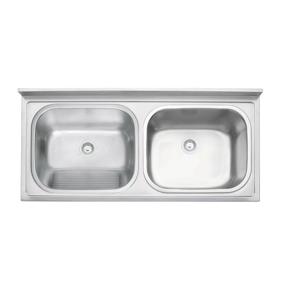 Tanque Duplo De Apoio Tramontina Hera Duo Plus 2c 34 + 37 L Em Aço Inox Acetinado 120x55 Cm Com 2 Válvulas