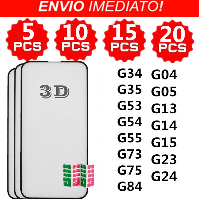 Kit 5/10/15/20 Película Vidro Temperado 3D Espessura Max MotoG04 G05 G13 G14 G15 G23 G24 G34 G35 G53 G54 G55 G73 G75 G84