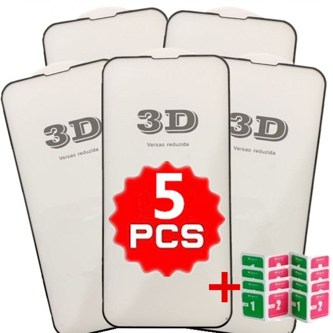 Kit 5 Película De Vidro Temperado 3D 9H Para iPhone 7/8 Plus Xs Xr 11 Pro Max 12 13 14 Pro Max