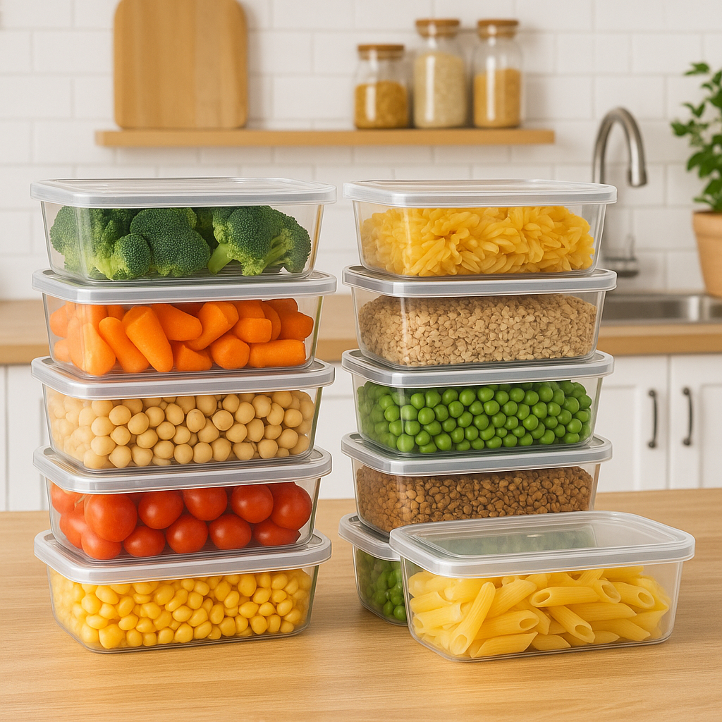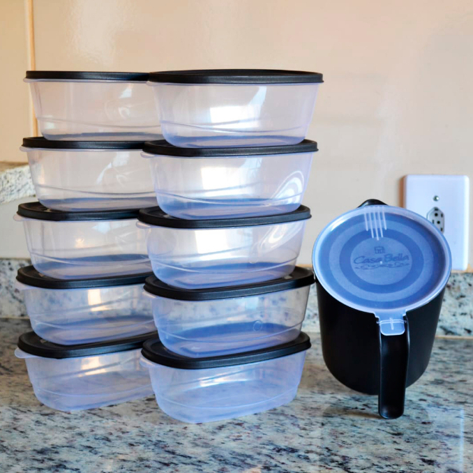 Kit 10 Potes 1000 ml c/ Tampa - BPA Free Transparentes Marmitas Fitness Potes Plásticos P/ Freezer Microondas Organizador de Alimentos Geladeira Plastico Alta Qualidade