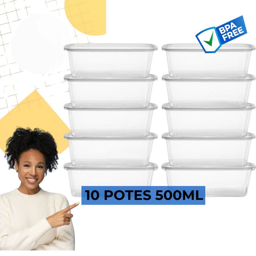 Kit 10 Potes 500ml Bpa Free Transparentes Reutilizável Com Tampa Marmitas Fitness Freezer Microondas